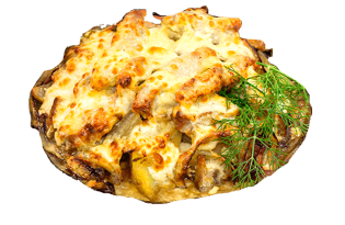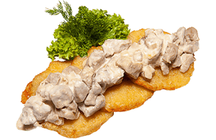 Шпитальки с картофелем по-деревенски и грибным соусом